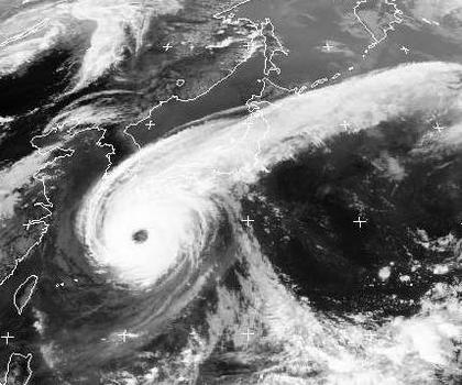 Der Taifun 'Nabi' erreicht heute mit Windgeschwindigkeiten von 210, in Böen bis 260 km/h die japanische Insel Kyushu, er überquert die Insel von Süd nach Nord und zieht dann unter Abschwächung entlang der Westküste von Honshu nach Nordosten.
