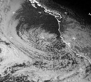 Bei Tiefdruckeinfluss und in eher kühler Luft bilden sich über dem Pazifik Schauerwolken. Das Tief lenkt sie von Westen nach Kalifornien, wo sich die Wolken teils an den Gebirgen stauen und abregnen. Da sich das Tief und die kühle Luft kaum verlagern, ändert sich zunächst an der Situation nichts.