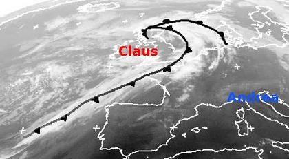 Tief 'Claus' und Hoch 'Andrea'