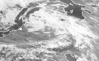 Über Norddeutschland erkennt man die Wolkenspirale von Tief 'Ortrun'. In der kalten Luft halten sich hier viele Wolken, die sich nur langsam von Westen her unter dem Einfluss eines Hochs über Belgien auflösen. Die Wolken am Alpenrand gehören zur Kaltfront von 'Ortrun'. (Bildquelle: NERC Satellite Receiving Station, Dundee University, Scotland, http://www.sat.dundee.ac.uk/)