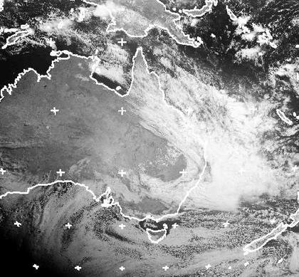 Ein Tief liegt über dem Osten Australiens. Von Nordosten führt es feucht-warme Luft gegen das Bergland im australischen Osten. Dabei kommt es teils zu anhaltendem und sehr ergiebigem Regen. Auch in Sydney muss damit gerechnet werden. Weiter nach Westen ist es auf dem Kontinent unter Hochdruckeinfluss gering bewölkt und trocken. (Bildquelle: NERC Satellite Receiving Station, Dundee University, Scotland, http://www.sat.dundee.ac.uk/)