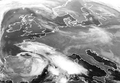 Ein Tief über der Iberischen Halbinsel sorgt mit seinen Ausläufern heute für zum Teil kräftige Schauer und Gewitter im westlichen Mittelmeer, sowie in Südfrankreich und Teilen von Nordspanien. Sonst ist der Himmel über Mitteleuropa unter Hochdruckeinfluss fast wolkenfrei, lediglich von Polen über Mitteldeutschland und den Niederlanden sind noch letzte Wolken eines schwachen Tiefausläufers zu erkennen.