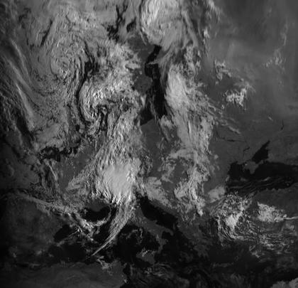 Vor der dänischen Küste liegt das Zentrum von Tief 'Viola'. Das dazugehörige Frontensystem sorgt für dichte Wolken in Mitteleuropa. Der Südwesten Europas und Osteuropas liegt unter Hochdruckeinfluss.