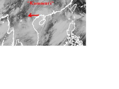Der tropische Sturm 'Kammuri' befindet sich auf dem Satellitenbild von Donnerstag früh über der Südchinesischen Küste nördlich der Insel Hainan. Zurzeit erreicht er mittlere Windgeschwindigkeiten von 74, in Böen 92 km/h. Berechnungen zufolge soll er sich nur wenig abschwächen und Richtung Westen in den Norden von Vietnam ziehen. (Bildquelle: NERC Satellite Receiving Station, Dundee University, Scotland, http://www.sat.dundee.ac.uk/)