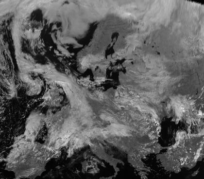Das heutige Satellitenfoto zeigt vor allem dichte Wolken im westlichen Europa, von der Biskaya bis in die Südwesthälfte Deutschlands und weiterhin von Großbritannien bis zur französischen Mittelmeerküste herrscht verbreitet unbeständiges Tiefdruckwetter mit häufigen Schauern und nur zeitweiliger Sonne. In Osteuropa ist es dagegen meist locker bewölkt und trocken, nur gebietsweise sind hier Schauer möglich.