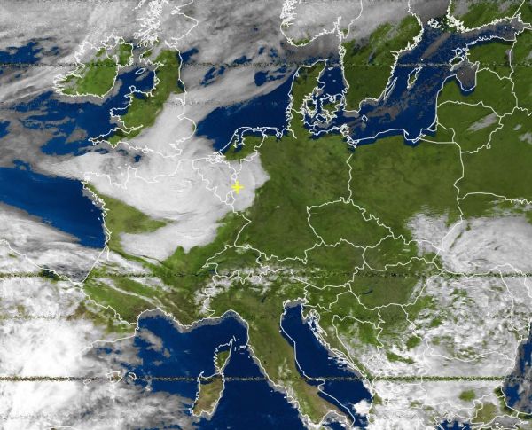 Auf dem Satellitenfoto von heute Nachmittag sind weite Teile Europas wolkenfrei oder nur leicht bewölkt zu beobachten. Ein großen Wolkenband erstreckt sich jedoch über weite Teile Nordfrankreichs, des Südosten Englands, sowie über Belgien und einige Landesteile im Westen von Deutschland. Hier blieb es den Tag über verbreitet trüb, wobei nur örtlich auch etwas Regen fiel.