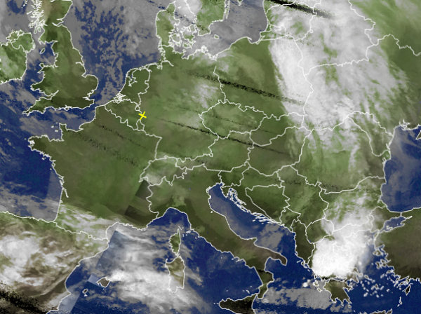 Über der Ostsee und dem Erzgebirge liegen Wolken und auch Regenwolken. Auch über dem Mittelmeerraum sind Schauer und Gewitter unterwegs.