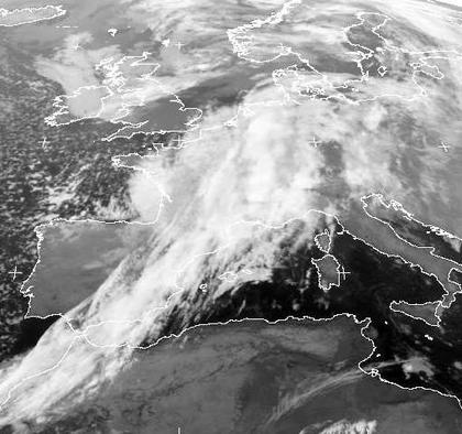 Im Bereich der Kaltfront des Tiefs 'Jakob' über der Nordsee hat sich ein kleines Randtief gebildet, das mit vielen Wolken und etwas Regen über Deutschland nach Nordosten zieht.