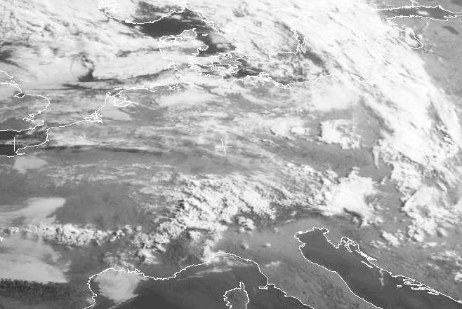 Im Alpenraum und Südfrankreich halten sich weiter Gewitterwolken. In Norddeutschland befindet sich flachere Bewölkung, aus der nur wenig Regen fällt.