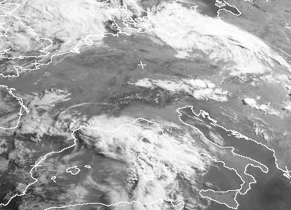 Auf dem Satellitenbild vom Morgen liegen kaum Wolken über Deutschland. Im Nordosten liegt noch das alte Tief 'Ortrun'. Atlantische Tiefausläufer bringen Wolken über die Nordsee. An den Alpen liegt noch die Bewölkung nächtlicher Schauer und Gewitter in Süddeutschland. Auch über dem westlichen Mittelmeer und Südfrankreich liegt Schauer- und Gewitterbewölkung. Noch ist jedoch nichts zu erkennen von den Gewittern, die sich gegen Abend in Südwestddeutschland bilden. (Bildquelle: NERC Satellite Receiving Station, Dundee University, Scotland, http://www.sat.dundee.ac.uk/)