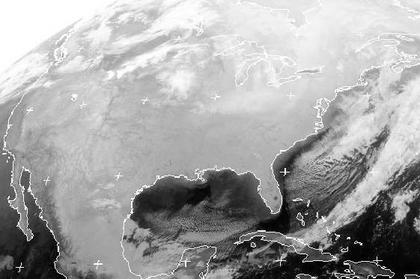 Tiefausläufer mit vielen Wolken und teils auch Schneefall findet man vor allem in Kanada und zum Teil im Norden der USA. Über der Südhälfte der USA liegen kaum Wolken. Erst mit ein wenig Abstand zur Küste bilden sich auf dem Atlantik und dem Golf von Mexiko wieder Quellwolken.