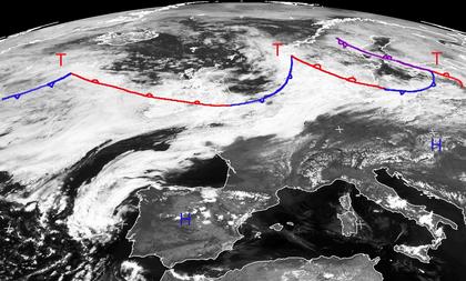 Wolken über Nordeuropa, Sonne im Süden
