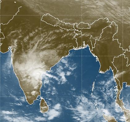 Die dichten Wolken über Südindien gehören zu dem Zyklon 'Nisha' mit seinem Zentrum an der Südostküste. Zurzeit erreicht er mittlere Windgeschwindigkeiten von 56, in Böen 74 km/h und hat sich zum Vortag schon deutlich abgeschwächt. Dennoch regnet es teils kräftig und ergiebig. Berechnungen zufolge soll er sich noch weiter abschwächen und etwas nach Nordwesten ziehen.