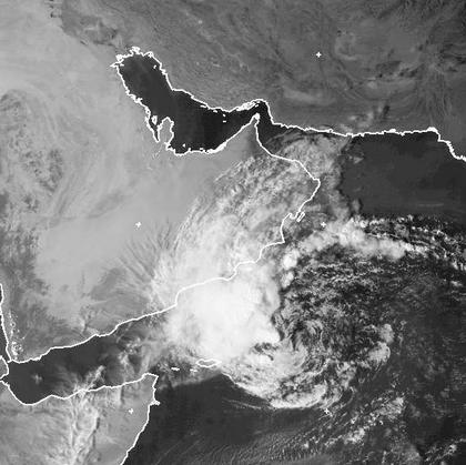 Während es sonst in Südwestasien meist wolkenfrei ist, liegt an der Südküste der Arabischen Halbinsel ein schwacher Zyklon. Er bestimmt vor allem das Wetter in Oman. Es kommt zu teils kräftigen und gewittrigen Regenfällen. Es werden aber nur Windböen um 75 km/h erreicht. (Bildquelle: NERC Satellite Receiving Station, Dundee University, Scotland, http://www.sat.dundee.ac.uk/)
