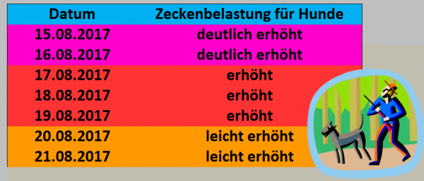 Das milde und zum Teil feuchte Wetter sorgt im weiteren Verlauf dieser Woche für einen teils deutlich erhöhten Hundezeckenbesatz in unseren Wäldern und Wiesen.