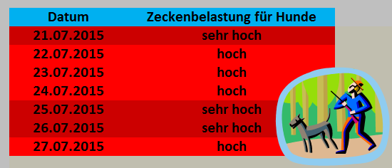 Die hohen Temperaturen sorgen bei den Hundezecken auch weiterhin für eine hohe bis sehr hohe Belastung.