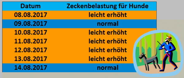 Unsere aktuelle Hundezeckenprognose bis zum 14.08.2017
