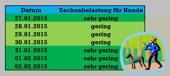 Im Laufe der Woche steigen die Tagestemperaturen kurzzeitig an. Besonders am Rhein kann es beit Temperaturen bis +7 °C vorübergehend zu einer geringen Zeckenaktivität kommen.