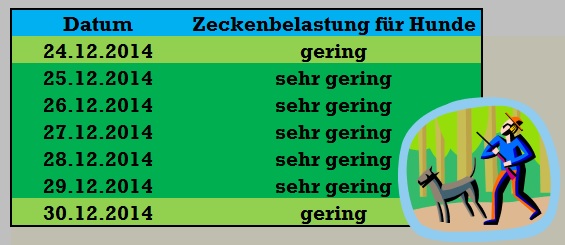 Die milde Phase hat zuletzt auch bei den Hundezecken für Aktivität gesorgt. Mit dem Einströmen kälterer Luft und den Frösten über Weihnachten ist es mit den Blutsaugern nun aber auch schon wieder vorbei...