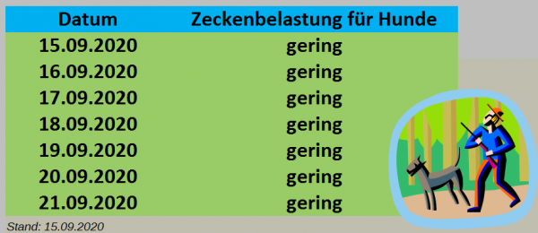 Das trockene und spätsommerlich-warme Wetter sorgt in dieser Woche nur für ein geringes Hundezeckenrisiko im Unterholz
