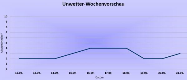 Die Gefahr durch Unwetter bleibt in der neuen Woche insgesamt auf einem leichten, zeitweise aber auch auf einem mäßigen Niveau: