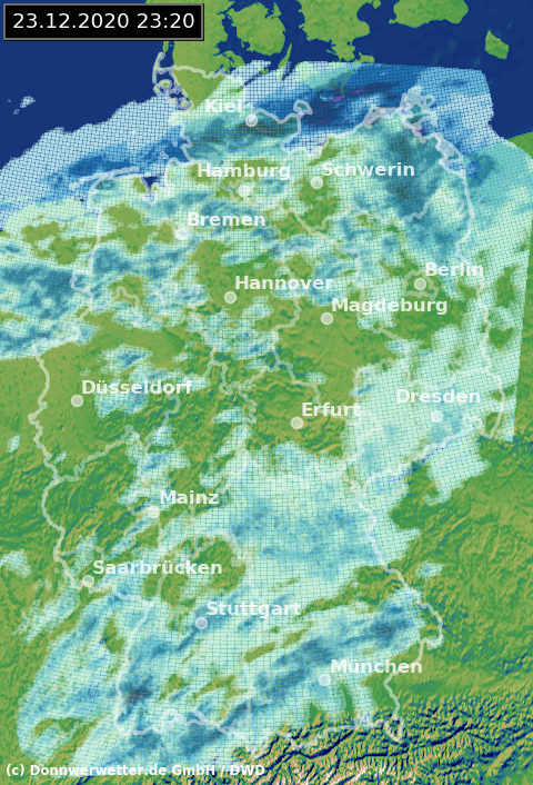 Radarbild von Mittwoch, 23.12.2020 um 23.20 Uhr