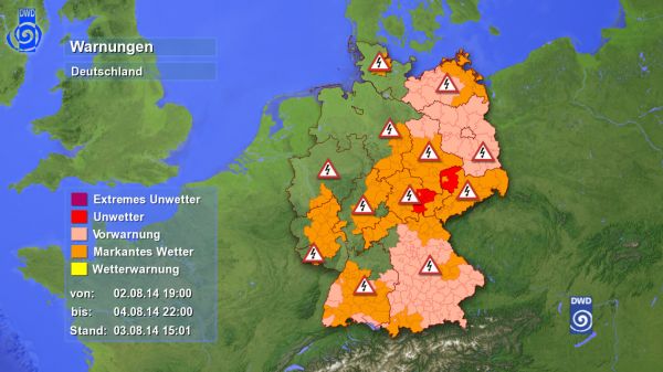 Am Nachmittag und Abend gibt es teilweise schwere Gewitter.