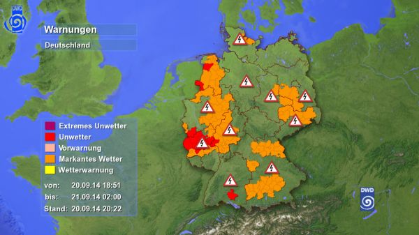 In NRW, RP, Niedersachsen und auch in anderen Teilen Deutschlands bestehen Warnungen. Mehr zur aktuelle Lage auf unserem 2-Stunden Prognosesystem.