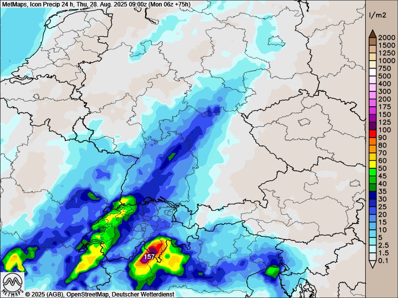 Neben Regen werden dabei in den nächsten Tagen auch Gewitter wieder ein Thema: Vor allem im Alpenraum und in Norditalien muss nach den aktuellen Modellläufen mit großen Regenmengen gerechnet werden.