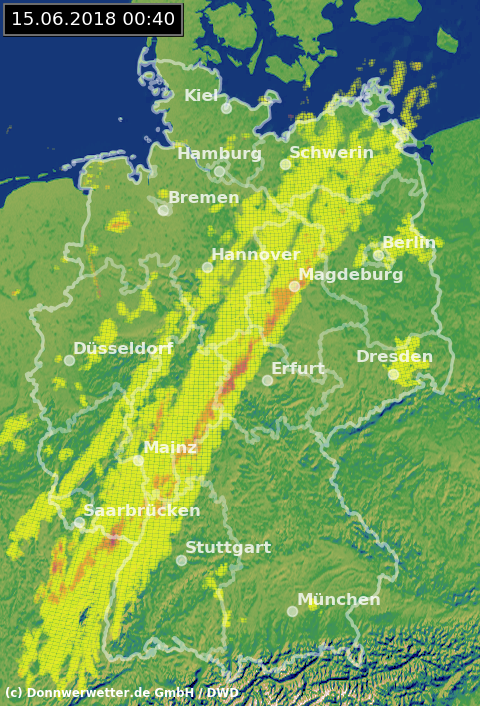 Radarbild von Freitag, 15.06.2018 um 00.40 Uhr