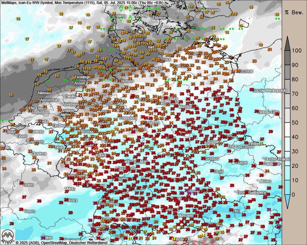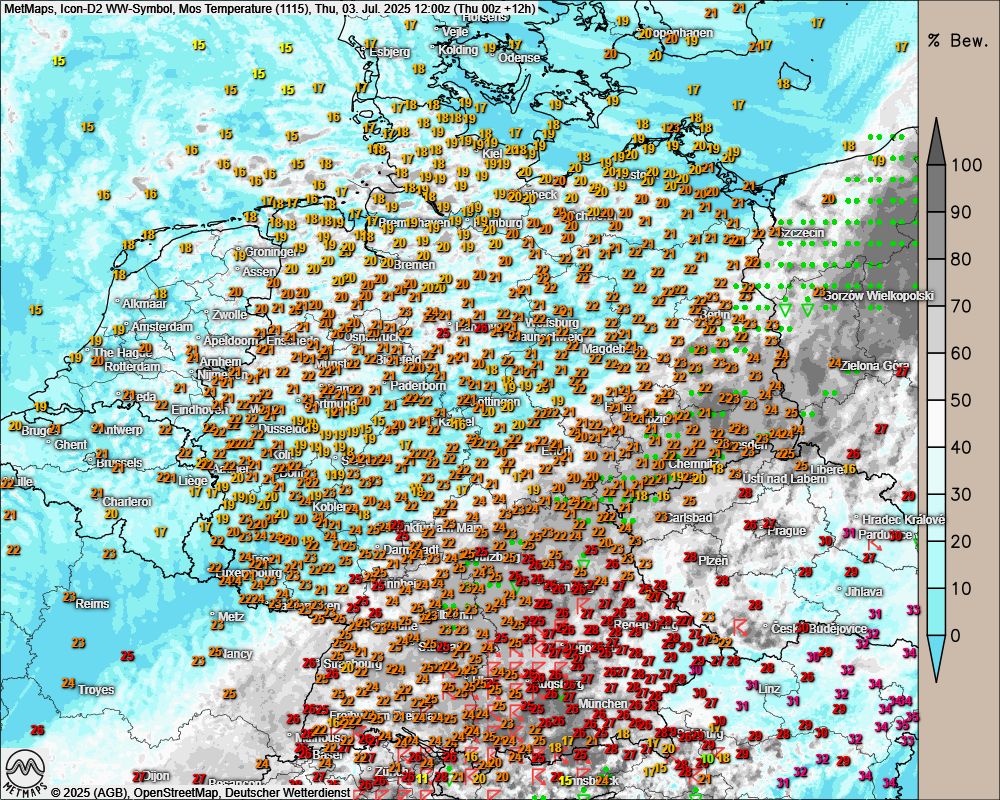 Die ICON-Prognosen für heute und morgen mit angenehmeren Temperaturen: