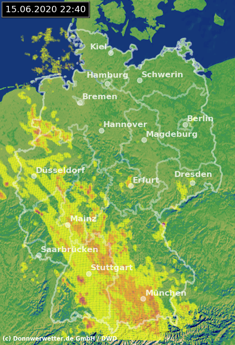 Radarbild von Montag, 15.06.2020 um 22.40 Uhr