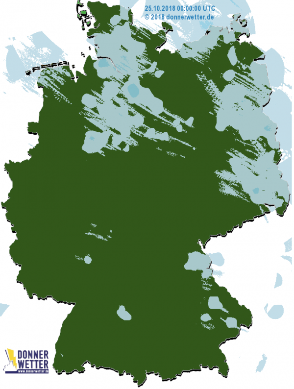Heute zieht im Tagesverlauf von der Nordsee neuer Regen auf, der bis zum späten Abend weiter landeinwärts vorankommt, sich dabei jedoch abschwächt. Die Niederschlagsmengen liegen dabei verbreitet zwischen 1 und 15 Liter pro Quadratmeter. Sonst bleibt es jedoch meistens niederschlagsfrei.