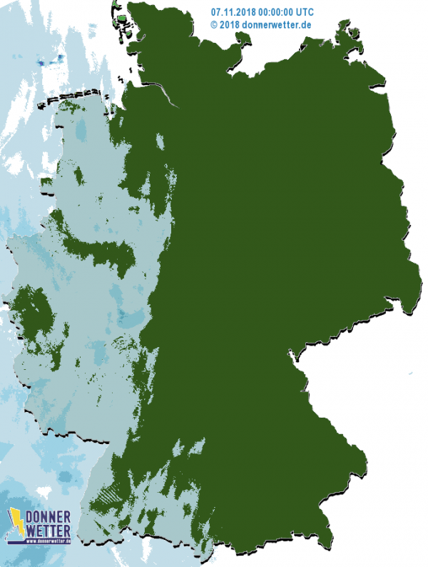 Am Samstag erreicht uns von Westen ein intensiveres Regengebiet. Die Niederschlagsmengen liegen dabei allgemein zwischen 1 und 15 Liter pro Quadratmeter. Trocken bleibt es voraussichtlich nur ganz im Osten, sowie im südöstlichen Bayern.
