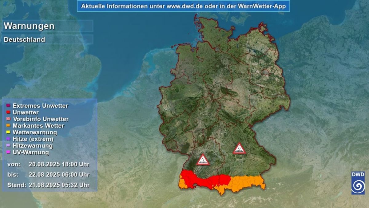 Unwetterlage am Donnerstag in Süddeutschland, Österreich und der Schweiz
