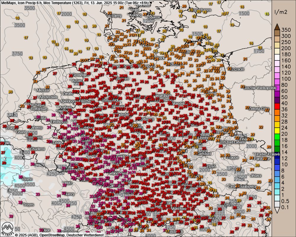 Am Wochenende deutet sich eine längere und komplizierte Gewitterlage an. Nach Hitzewerten am Freitag, im Westen und Südwesten können die Höchsttemperaturen durchaus bei 33 bis 35 Grad erreichen, nimmt die Instabilität am Samstag massiv zu.