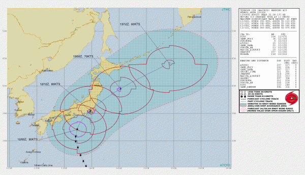Es werden am Wochenende große Regenmengen erwartet. Japan ist für solche Taifune gut gerüstet, trotzdem werden Schäden und Opfer erwartet, da 30-40 Mio. Menschen direkt betroffen sind.