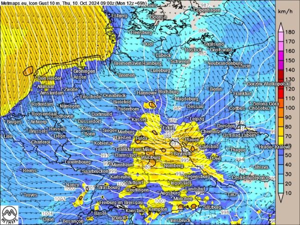 Es verfestigt sich langsam in den Wettermodellen, dass der Kern eher südlich durchzieht, also Frankreich, Schweiz und Süddeutschland vom Windfeld erwischt werden. Nördlich des Kerns ist es deutlich ruhiger, so in NRW.