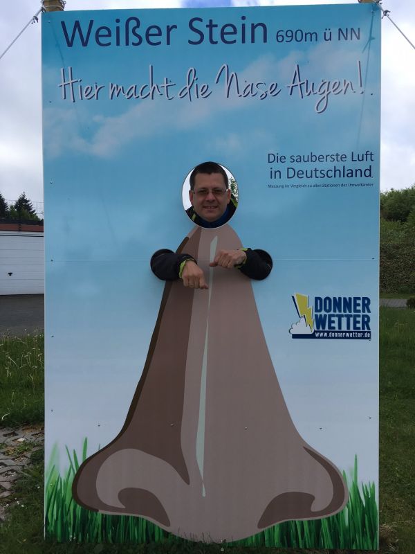 In Zukunft können die Besucher des Weißen Steins mit Hilfe von zwei großen Fotowänden selbst zur überdimensionierten Nase werden und Grüße aus der besten Luft Deutschlands senden.