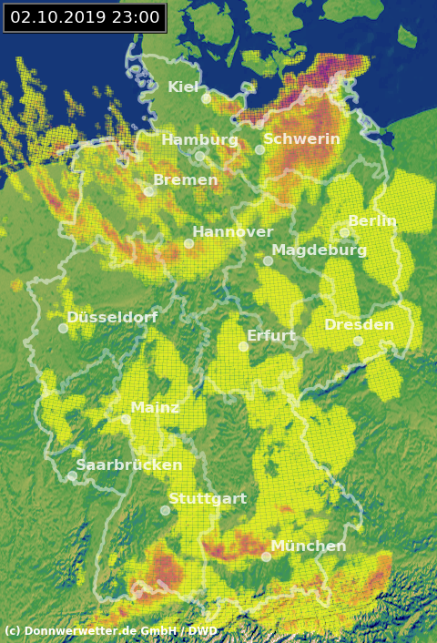 Radarbild von Mittwoch, 02.10.2019 um 23.00 Uhr