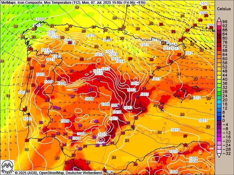 Während wir in Deutschland einen eher wechselhaften Wochenwechsel bei gemäßigten Temperaturen erleben, stehen die Zeichen im Mittelmeerraum auf großer Hitze: In Griechenland etwa erreichen die Spitzenwerte an diesem Wochenende Temperaturen um 37 bis 38 Grad. Und auch in Spanien nehmen die Temperaturen wieder an Fahrt auf - am Montag sind hier wieder Höchsttemperaturen von stellenweise über 40 Grad zu erwarten.