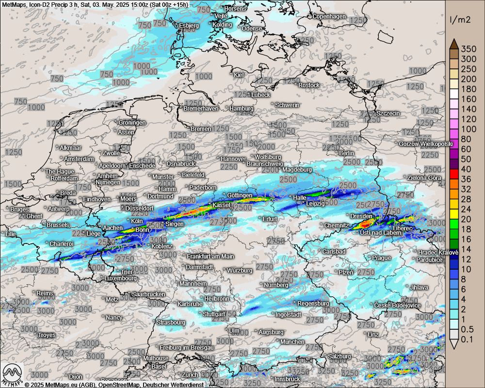 Die Regenmengen können lokal durchaus 20 bis 30 l/m². Von den höchsten Niederschlagsmengen sind besonders das südliche NRW, Nordhessen, Thüringen und Sachsen betroffen.
