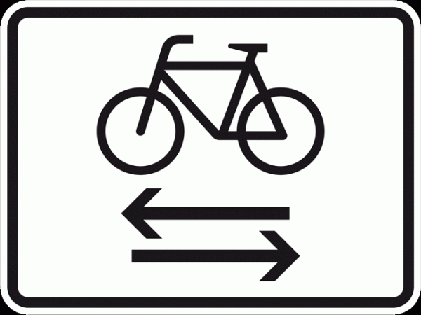 Bei diesem Zusatzschild mit einem Fahrrad und zwei Pfeilen in unterschiedliche Richtungen muss man ganz besonders vorsichtig fahren: Radverkehr ist hier in der Gegenrichtung zugelassen und das Rechts-vor-links-Gebot gilt hier ebenso.