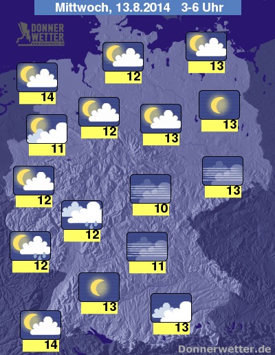 Die Temperaturen orientieren sich mit Tiefstwerten um 14 bis 10 Grad an denen der Vornächte.