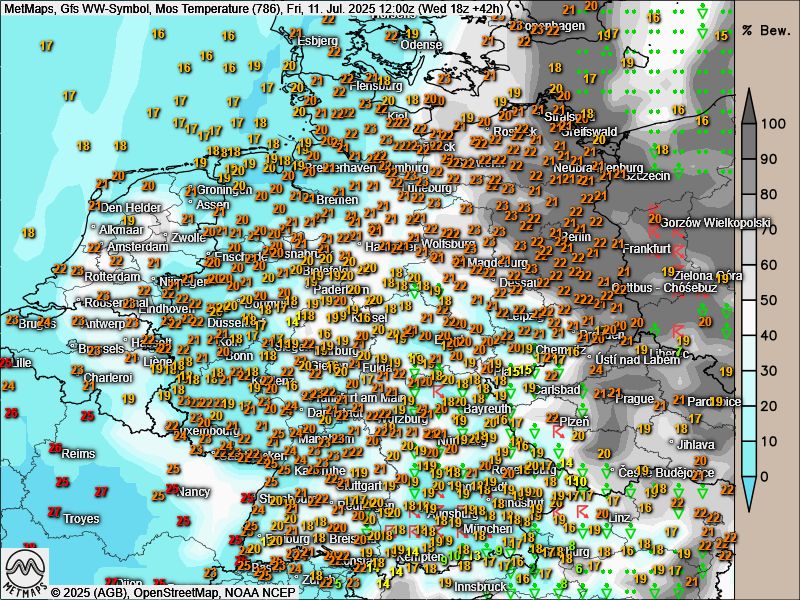 Zwar können die Temperaturen im Südwesten punktuell und zeitweise schon mal Temperaturen um 30 Grad erreichen, vor allem bis zum übernächsten Wochenende pendeln sich die Tageshöchstwerte mit 21 bis 28 Grad auf ein insgesamt gemäßigtes Sommerniveau ein. Dabei mischen zudem immer wieder Schauer und einzelne Gewitter mit, vorwiegend in den östlichen Landesteilen.