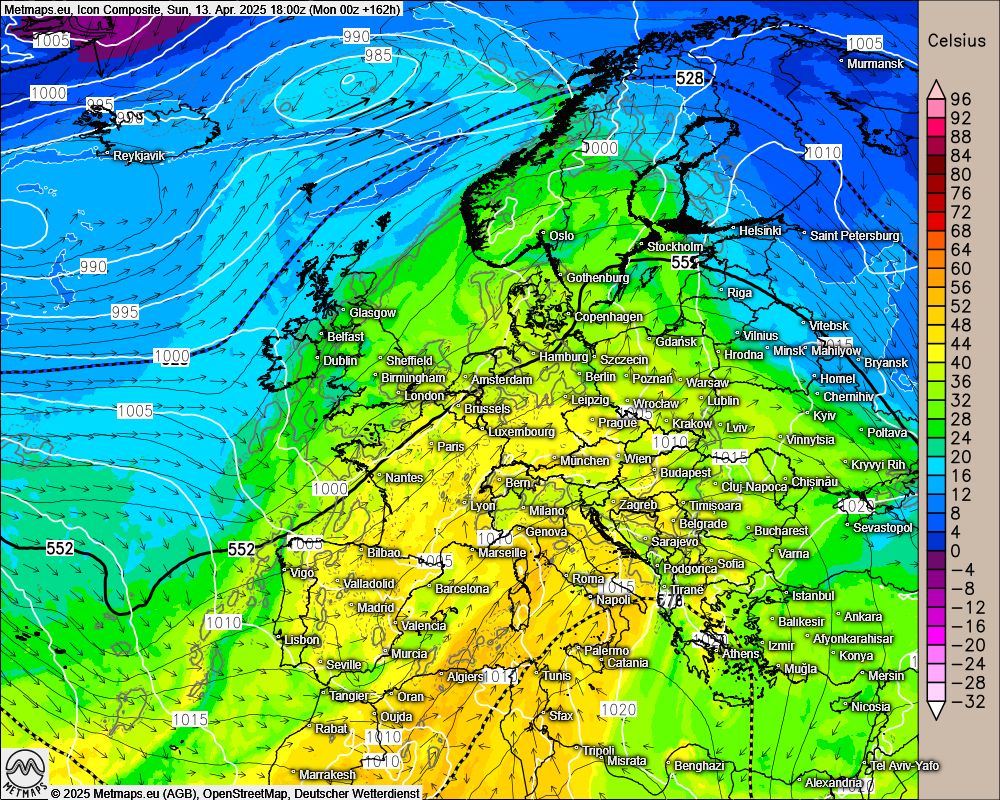 Die Europa-Wetterkarte nach ICON für den kommenden Sonntag: