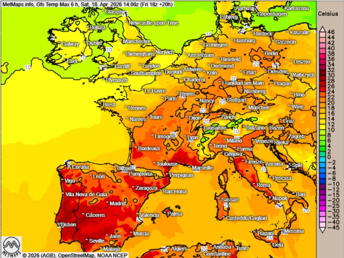 In Frankreich steigen die Temperaturen auf über 25 °C, in Spanien werden erstmals deutlich über 30 °C erwartet: