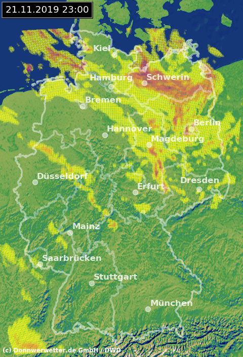 Radarbild von Donnerstag, 21.11.2019 um 23.00 Uhr