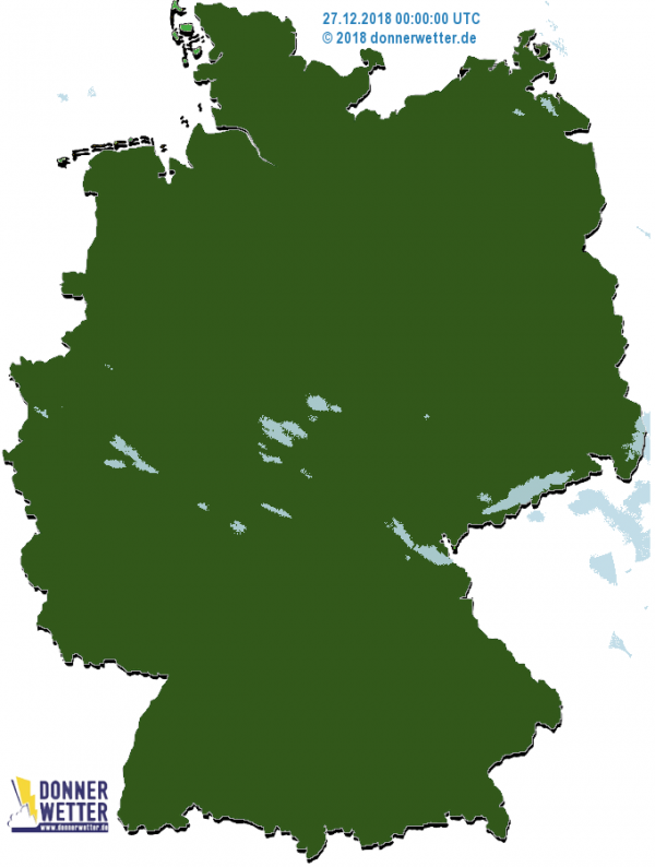 Über den Jahreswechsel baut sich ein neues Hochdruckgebiet auf. Lediglich die Nordhälfte wird von einer Skandinavischen Warmfront mit gelegentlich leichtem Regen oder Sprühregen beeinflusst.