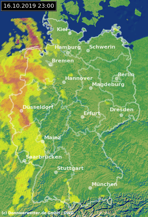 Radarbild von Mittwoch, 16.10.2019 um 23.00 Uhr
